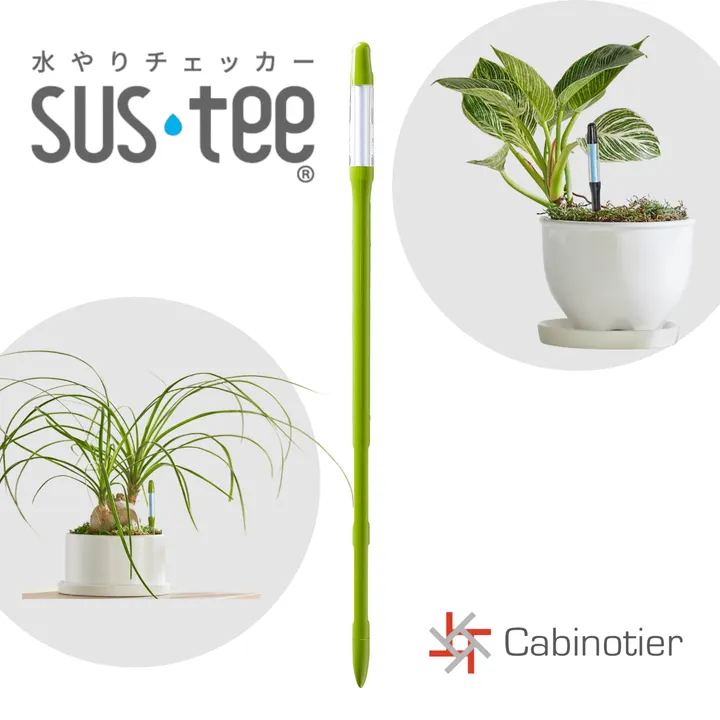 植物の水やりチェッカーSUStee(サスティー)は、水やりのタイミングを色の変化でお知らせ。白色は水やりの合図です。植物ライフをもっと快適に!