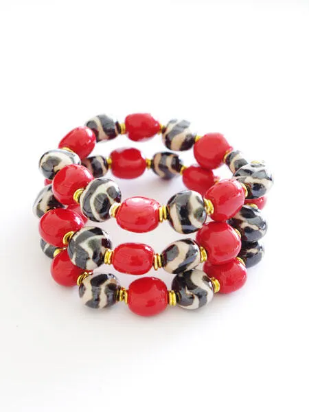 プチラウンドブレスレット(ゼブラ柄×レッド) レッド