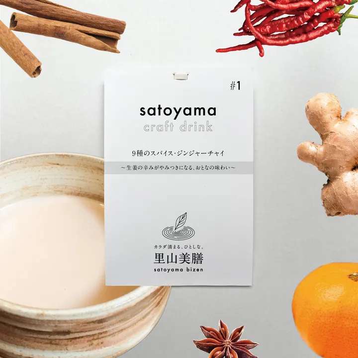 [ポイント] ・こだわりのクラフトドリンクを、ご自宅で手軽に作れる ・粉末タイプなので、持ち運びにも便利! ・軽量でかさばらず、保存性も安心! ・ホットで熱々にして温まるもよし、氷を浮かべるもよし ・チャイだけでなく、無糖炭酸で割ってジンジャーエールとしても楽しめる! [内容物の説明] 【9種のスパイス・ジンジャーチャイ 〜生姜の辛みがやみつきになる、おとなの味わい〜】 ミルクで割って、こだわりのジンジャーチャイを召し上がれ。 温めればホット、氷を加えればアイスに!刺激感が病みつきになる一品です。 [シリーズの紹介] 里山美膳シリーズ −【satoyama bizen】 ・シリーズのコンセプトは『カラダ清まる、ひとしな』。 ・野菜を主材料に、スパイスやハーブなどを調合した調理キットを展開 ・シリーズすべてのラインナップにおいて、ヴィーガン・グルテンフリー対応。 3つのポイント: ① 無農薬・無肥料の自社農場で採れた素材を使用 ⓶ 採れた素材の滋味を引き出す、独自の加工技術 ③ 健康な食事について考え抜いた、控えめな味つけ [調理方法/つくりかた] ※詳しくはパッケージに記載されている手順に沿って、ご調理ください。 1.粉を溶かす カップに本品と少量の水を入れペースト状にする。 2.ミルクを注ぐ 1杯分に対しミルク150mlを入れて、よくかき混ぜん 3.ホット/アイス お好みで温めればホット、氷を加えればアイスに。 ※牛乳や豆乳など、お好みのミルクでお楽しみください。鍋や電子レンジで温めていただくと、より辛さが際立ち、ぽかぽかのホットチャイに仕上がります。 [配送について] 「ポスト投函対応商品」 ※こちらの製品は、ポスト投函に対応しています(一律350円) ※最大で10〜20品(目安)の同梱が可能です。
