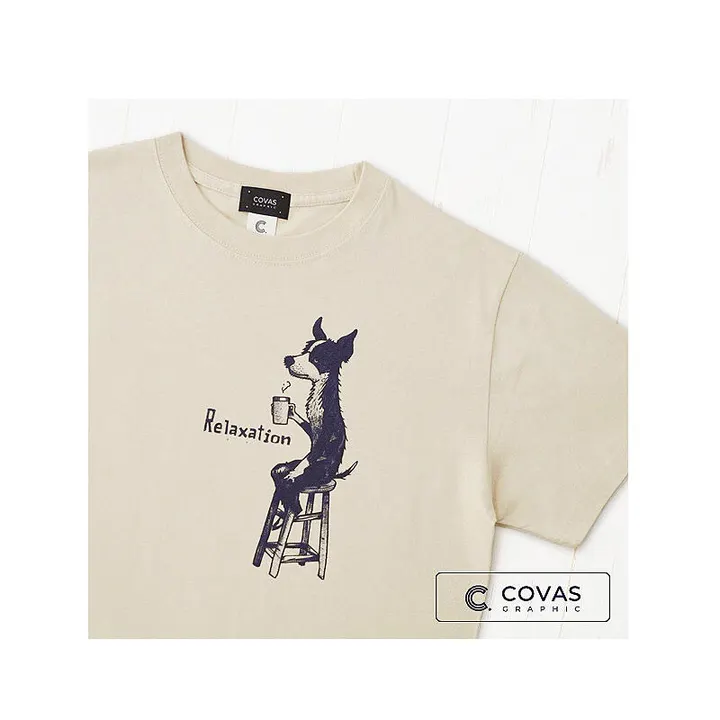 ユニセックス・半袖プリントTシャツ "ブレイクタイム犬" ベージュ デザインTシャツ 363643-32 size: L