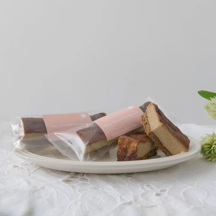 ▼内容量 ・抹茶バスクチーズケーキ3本 ・ほうじ茶バスクチーズケーキ3本 ケーキサイズ:110×25×25mm 袋サイズ:140×40×30mm