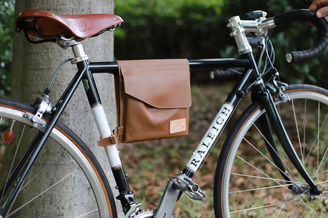 自転車のフレームに取り付けることで、スマホやお財布などの小物を収納できるようになります。 パンツのポケットに入れることで漕ぎづらかった自転車に乗る時のストレスを、おしゃれに解決。防水レザー仕様なので、ちょっとした雨であれば中身が濡れることもありません。泥はねなど汚れにも強いため、従来のお手入れや気遣いも不要です。