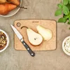 木の繊維を合成した素材を使用している耐久性に優れたカッティングボードです。表面は非多孔性で細菌が侵入しにくく、薄型なので食材を切ってそもままお鍋にサッと入れることができます。水切れがよく、お手入れも簡単で食器洗浄機にもお使いいただけます。毎日のお料理作りだけでなく、盛り付け用のボードとしても大活躍!端に穴がついているのでフックにかけて収納いただくことも可能です。