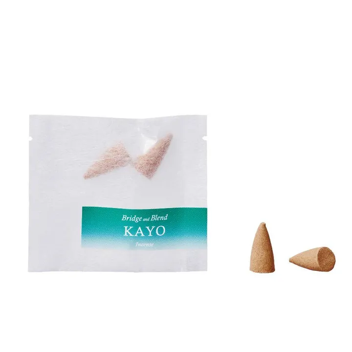 MADE IN JAPAN 🇯🇵 【OMOTENASHI Selection 2023 受賞ブランド】 源氏物語に登場する香り Six in Sense—KAYO は、1000年前の調合からインスピレーションを得た蓮の花をイメージした初夏のお香です。 KAYO は『源氏物語』の32帖「梅枝」(うめがえ)と38帖「鈴虫」(すずむし)に登場します。詳しくはBridge and Blendのブログ《源氏物語と荷葉》 世界中から届いた香原料が 1000年前の日本で出会い、交わり、日本の香りとして世界へ旅立つ。淡路島の香司と再現した1000年前の記録に残る調香レシピで「古くて新しい」お香体験が可能。サステナブルを意識した手のひらサイズのパッケージ(フルサイズ)は蓋を香皿として使用可能。備え付けの香立で、最後までしっかりとお香を焚けます。 せわしないデジタル社会を離れ、お香に火を灯し、煙が立つのを目で追い、香りを聞く穏やかな時間へ。アナログな所作とともに、あなたを静かに過去へと誘い、「心」を丁寧に整える贅沢なひとときをお過ごしください。 <主な香原料> 沈香 白檀 丁子 藿香(かっこう) 安息香 龍脳 <3つのこだわり> ・100%天然香原料使用 ※千年前の調合に限りなく忠実に再現するため、希少価値の高い沈香を20%以上という高配合率で使用 ・クラフトマンシップ — 淡路島でハンドメイド、東京でハンドパック ・サステナブルを意識したパッケージ ※売り上げの1%を自然保護団体「1% for the Planet」に寄付しています。 <利用シーン> ・心を整える時間に ・大切な方へ感謝のギフト ・バスタイムのくつろぎに ・読書に集中したいときに ・ゆったりとした気持ちで ・旅先での自分の空間作りに <数量> コーン型 2個  ※通常の1.5〜2倍の大きさです。 <おすすめ商品> ・フルサイズ 20個入り ・リフィル  10個入り ※香炉灰 一緒にお使いいただくと、お香がより最後まで無駄なく燃え尽きます。ぜひお試しください。