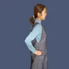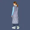 一年中活躍してくれる、長めのジャンバースカート。 色は、生成りにネイビーです。 二重織コットンで、しっかりとした生地です。軽いです。 コットン98%にポリウレタン2%入っているのでストレッチ生地です。 夏は、Tシャツの上にこれだけでもOK! 冬はもこもこ着込んだ上にこのジャンスカを着れば、一日中しっかり働けます。 家の中でも、お出かけの時にもお役立ち、間違いなしです。 前ポケット左右は、ふらしポケットと言って、袋の部分が離れています。 これは、中に入れたものがしゃがんだときに落ちないためです。 うしろにも左右にベース型のポケットがあります。 裾から上37.5㎝のところより、前中心スカート部分には大きくスリットが入り、動きやすくしています。 脇も大きく開けることで、動きやすく、また、袖ぐりの広いセーターなどの上からでも着れるようにしています。 後ろは、ハトメに紐を結ぶ留め方で、ワンアクションで済みます。 上から被っても良いですが、前の深いVネックで下からも履けます。 モデル身長165㎝