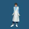 ~agnetaシリーズのワークウエア。グレー杢の落ち着いた色味で、幅広い年齢層におすすめです~ 一年中活躍してくれる、長めのジャンバースカート。 色は、生成りにグレーの杢が入っています。 二重織コットンで、しっかりとした生地です。軽いです。 コットン98%にポリウレタン2%入っているのでストレッチ生地です。 夏は、Tシャツの上にこれだけでもOK! 冬はもこもこ着込んだ上にこのジャンスカを着れば、一日中しっかり働けます。 家の中でも、お出かけの時にもお役立ち、間違いなしです。 前ポケット左右は、ふらしポケットと言って、袋の部分が離れています。 これは、中に入れたものがしゃがんだときに落ちないためです。 うしろにも左右にベース型のポケットがあります。 裾から上37.5㎝のところより、前中心スカート部分には大きくスリットが入り、動きやすくしています。 脇も大きく開けることで、動きやすく、また、袖ぐりの広いセーターなどの上からでも着れるようにしています。 後ろは、ハトメに紐を結ぶ留め方で、ワンアクションで済みます。 上から被っても良いですが、前の深いVネックで下からも履けます。 モデル身長165㎝