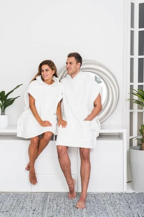 <商品説明> ・横を開けて、上からかぶるタイプ。横はスナップで2か所ずつ留めます。フード付き。 ・やや厚手のふかふかコットン。肌触りが心地よく、高級感があります。 ・吸水性がよく、厚手なのに(体感的に)乾くのは遅くはありません。 ・洗濯乾燥に強く、丈夫で長持ちします。ふかふかも長持ちします。 ・サウナー向け:サウナ上がりに使用するポンチョですが、ふかふかタオルの部屋着としてもお使いいただけます。 ■サイズ展開:S/M/L 丈が10cmずつ違います。 ■カラー展開:5色(ホワイト・ベージュ・グレー・パールグレー・ローズ) ■生産国:トルコ製(フィンランドデザイン) ■素材:綿100%(エコテックスクラス1認証済) ■取り扱い:洗濯機乾燥機可。柔軟剤不可。 ■添付品・国内加工・商品説明シール貼付(日本語)商品内容、素材、取扱注意記載。 ■梱包サイズ:縦38x横26x厚10 重量:約1kg ■発注個数:1個から可。 <日本での販売> 日本では、リカトレーディングビューロー合同会社(名古屋)が独占販売権を持ち、2017年から輸入販売を開始しました。 全国百貨店のポップアップを中心に、小売店、オンラインショップ、カタログギフト、ホテル、温浴施設、サロン、ショウルームなどに卸しています。 展開売場は、北欧、バストイレタリー、タオル、婦人服雑貨、サウナスパ、ビューティーなど、幅広く展開可能です。品揃えなど、ご相談ください。