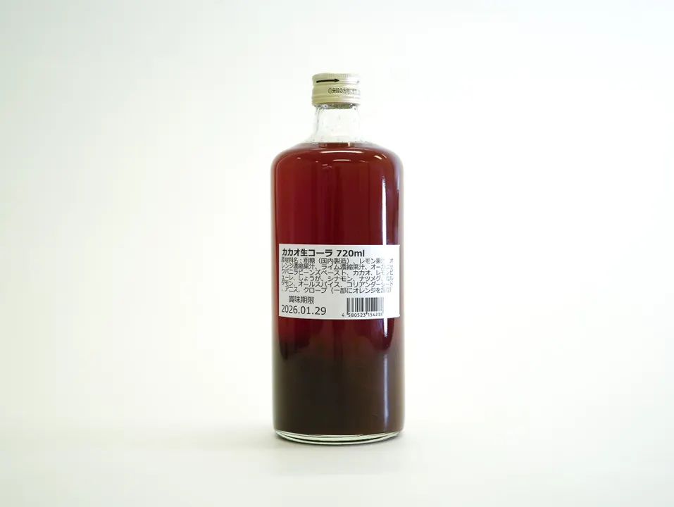 コーラナッツの代わりにオリジナルカカオを使用したクラフトコーラです。カルダモンやナツメグなど、9種のスパイスに柑橘果汁を加え、風味豊かなコクのある味わいに仕上げました。様々なスパイスに加え、華やかなカカオの香りがふわっと広がります。原液を炭酸水で割ってお召し上がりください。 〇ジャパンフードセレクション金賞受賞 日本オリジナルの本格的な食品審査・認定制度「ジャパン・フード・セレクション」にて、2万人を超えるフードアナリストの厳格な審査により「金賞」を受賞しました。コーラナッツではなくカカオを使うという唯一無二のアイデアや、スパイシーで風味豊かな味わい、素材や製造工程で安全性に気を使っている点など、商品自体の美味しさはもちろん、製造背景についても高く評価されています。 〇厳選したスパイスにカカオをブレンド。暮らしに寄り添うクラフトコーラ。 カルダモンやシナモンなど9種のスパイスに、希少性の高いカカオや柑橘果汁を合わせたクラフトコーラです。カカオはコスタリカの農園で、栽培から乾燥、発酵方法までを監修したオリジナルカカオを使用。心癒される香味たっぷりのカカオハスク(カカオの皮)を加えることで生まれたカカオ独自の香り高いコクと、スパイスとハーブの刺激的な香りを感じられるだけでなく、レモンやオレンジなど柑橘果汁で後味すっきり。友人との団らんには、爽やかな炭酸割りを。お湯割りでホットドリンクなども、暮らしの様々な場面でお楽しみいただけます。 〇体に良い飲み物だったコーラをもう一度体に良い飲み物に。 誕生当初のコーラはスパイスやハーブから作られた薬として販売されていました。そんなコーラを、「もう一度体に良いものとして味わってほしい」という思いから、カカオ生コーラは生まれました。様々なスパイスからベースとなる味を作り、特徴となるスパイスが際立つよう余計なものを省いたあと、酸味や苦みや柑橘の爽やかな香りのバランスをひたすら追求し絶妙な味わいに仕上げています。 〇ノンアルコール飲料として、「クラフトコーラ」という選択を。 「普段お酒は飲まないけれど、1日頑張ったご褒美として特別感のあるドリンクを飲みたい。」「健康のためにお酒は控えている。」という方のノンアルコール飲料として、クラフトコーラはぴったりの贅沢ドリンクです。コーラのお供には、ぜひ相性抜群のチーズがおすすめ。濃厚なチーズの旨味と塩気が、のどごしすっきりなクラフトコーラと見事にマッチし、お酒を飲まなくても贅沢な時間をお楽しみいただけます。 〇体にうれしい素材で作った京都発のクラフトコーラ 「小規模生産」あるいは「職人技が込められた」といった意味が込められているクラフトコーラ。京都発のカカオ生コーラにおいても、「コーラナッツではなくカカオでカフェインを補う」「保存料・香料・着色料を使用せず素材本来の味や香りを活かして仕上げる」など、一般的なコーラにはない独自のこだわりが込められています。 〇人にも、環境にもやさしい製品づくり。 カカオハスク(カカオ豆の皮)を活用したカカオシリーズは、美味しいだけではなく、アップサイクルの取り組みも大切な目的の一つとしています。ビーントゥーバーのチョコレートを作る際、カカオ豆の約30%を占めるカカオハスクは、ほとんど活用されていません。そこで、カカオハスクに価値を見出したアップサイクルな商品を開発しています。その商品をご利用いただくことで、リデュース(無駄なごみの量をできるだけ少なくすること)に貢献。カカオを丸ごと仕入れることで、良質な生産にも繋がると、私達は考えます。 〇「GOOD CACAO」シリーズ。 顔の見える生産者から直接仕入れた上質なカカオの心癒される香り、味に深みを生む独特のコクや旨味など、カカオの魅力を余すことなく引き出した「GOOD CACAO」シリーズ。カカオのニブはもちろん、ビーントゥーバーチョコレートを作る過程で生まれる香味たっぷりのハスク(カカオ豆の皮)まで。「カカオのぜんぶ、まるごとおいしく。」をコンセプトに、カカオのアップサイクルにもつながる、心も体もホッとする“カカオ香るひととき”をお届けします。 〇楽しみ方 シンプルなソーダ割だけでなく、ジンジャーエールや牛乳、お酒好きな方はビールやウィスキーなど、幅広い飲み方がお楽しみいただけます。混ぜ具合や割合によっても変化する味わいの中から、お気に入りの楽しみ方をぜひ見つけてください。