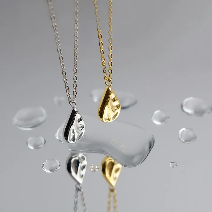 金属アレルギー対応「ieLS」ステンレス ドロップチャームネックレス シルバー