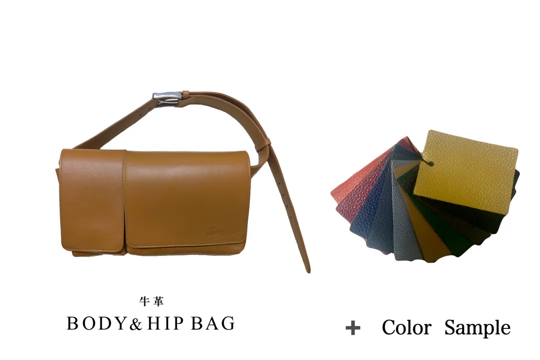 牛革ボディ&ヒップバッグ1個+カラーサンプル トライアルセット キャメル