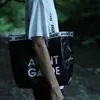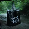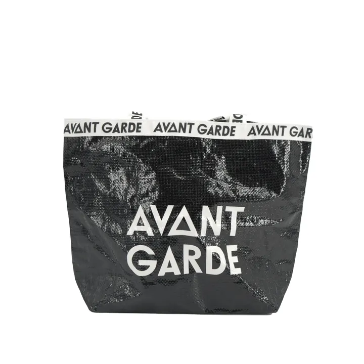 レジャーシートに使われることが多い、ポリプロピレンをラミネートした素材を使用しました。軽量で持ち運びやすく、防水性や透湿性に優れているためアウトドアに最適。釣りやキャンプの荷物を運ぶためのバッグや、ショッピングバッグとしても使えます。