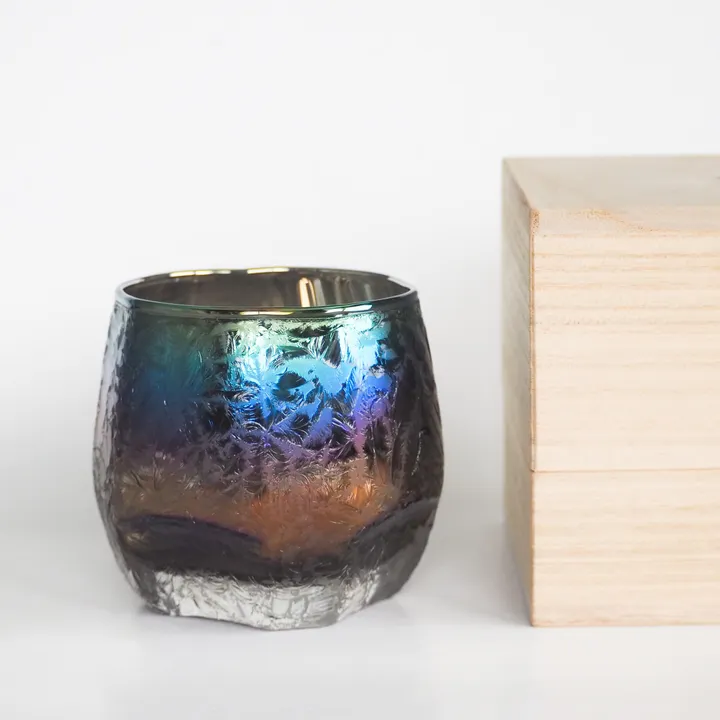古き良き西洋から伝わる伝統建築技術。 文化との調和から未来への伝承へ。 -concept- ICHIGO ICHIE 一期一会 Jewelry・Glass × 結霜硝子 結霜硝子は、もともとは西洋でステンドグラスに用いられ、日本では大正~昭和初期、主に建築分野にて活躍していましたが、時代の流れとともに希少な技術となりました。 まるで霜が降りたように美しいこの模様は、けして同じ仕上がりになることがない「一期一会」のデザインです。 【JPN GLASS - Jewelry・Glassと伝統技術のコラボシリーズ】 テクノロジーとカルチャーの調和で、伝統技術を未来へと再考する。 日本の伝統技術は、その時代の文化(カルチャー)と融合することで育まれてきました。今の時代の文化に調和することにより伝統技術は初めて伝統として脚光を浴びます。古き良き技術と新鋭のナノ技術が調和することにより、未来へ繋がる伝統へ。 時代とともに変化する価値観に寄り添いながら、伝統と最先端技術を融合したグラスで、今この瞬間、そしてこれからの時をお愉しみください。