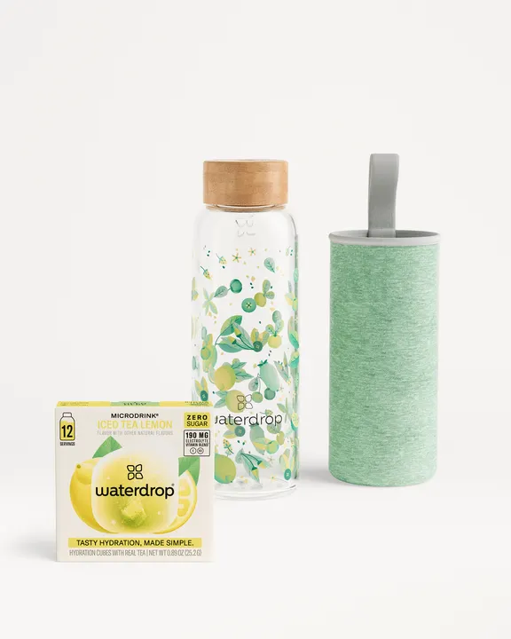12個入り・天然の茶葉、ビタミン、砂糖不使用・高耐久性ホウケイ酸ガラス、400ml エディショングラス (サイズ): 400ml 天然エキス 栄養価の高いビタミン 砂糖不使用 ヴィーガン ローカロリー ホウケイ酸ガラスボトル 商品説明 【商品説明】 みずみずしいレモンと天然の緑茶の美味しさが詰まった、アイスキューブの定番!家の中でも外出先でも、グラスボトルで環境に優しく。400mlでお好みのデザインからお選びいただけます。 サステナブルな飲み物の選択 waterdropregなら最小限のパッケージで、500mlペットボトル飲料と比べて プラスチックを最大98%削減。 waterdropregの使い方 水をもっと飲むためのシンプルな3つのステップ: WATER: 400-600mlの冷水 DROP: キューブを溶かす ENJOY: 爽やかでフルーティーな水を楽しむ 最高品質の果実エキスと本物の茶葉 Waterdropreg Microdrink ICE TEA LEMON ハイドレーションドロップ 12個 ・緑茶 - レモン ・天然果物・植物エキス ・栄養価の高いビタミンC/B3 ・ローカロリー ・砂糖不使用 ・人工保存料不使用 ・グルテンフリー ・ヴィーガン ・低カフェイン含有量(1.4mg/100ml) ・直射日光、高温多湿を避けて保存してください。 原材料および栄養成分表示 天然フレーバーと緑茶エキスによるレモンの味わいと、甘味料、ビタミンを含む爽やかなドリンクを作るために使用される発泡性キューブ。 平均栄養価/500 ml 当たり エネルギー 5.2 kcal タンパク質 0 g 総脂質 0 g 炭水化物 0.4 g 食塩相当量 0.2 g ビタミンC 18.0 mg ナイアシン 3.2 mg 原材料:緑茶エキス/pH 調整剤、香料、炭酸 Ca、甘味料(スクラロース)、ビタミンC、ナイアシン 「小さいドロップでこんなに美味しくなるなんて信じられない!」 最高の原材料を詰め込んだキューブ 最高品質の果物や植物のエキスと天然のお茶で作られたでマイクロドリンクICE TEA LEMONで、いつもの水をフルーティーで爽やかなドリンクに変身! レモン繊細な酸味と香り。 緑茶マイルドでフローラル、爽やかな風味。 ビタミンC免疫機能をサポート ナイアシンエネルギー代謝の維持を促進する効果があります。 1. 天然エキス. 2. 栄養価の高いビタミン. 3. 砂糖不使用. 4. ヴィーガン. 5. ローカロリー. 6. ホウケイ酸ガラスボトル. 爽やか&刺激的! 実用的な形状のおかげで、持ち運び簡単!みんなで一緒にシェアすることもできます。自分用、家族用、友達用、様々なシーンでお使いいただけます!