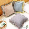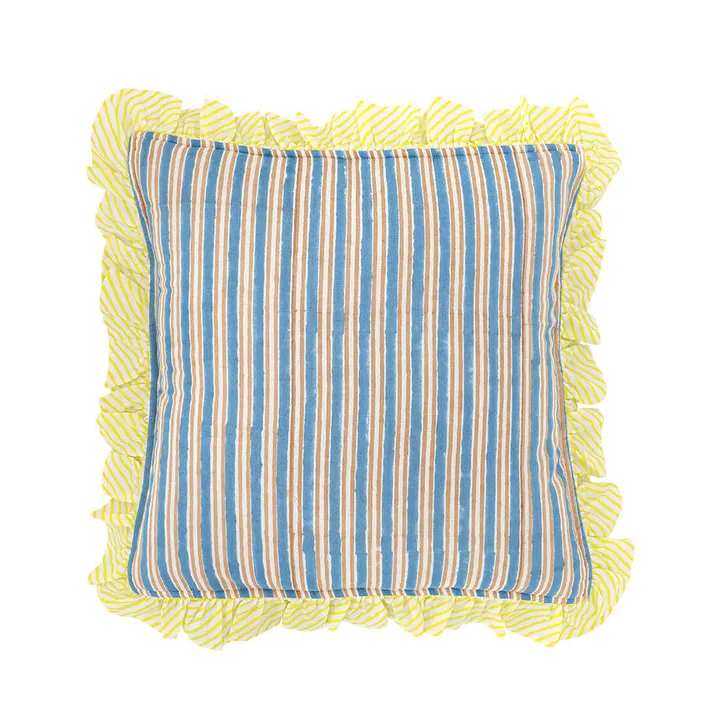 ブロックプリントがかわいいボア付きカバー すっきりしたストライプにフリルでほんの少しの甘さをプラスしました。 一見シンプルに見えますが、柄のかすれ具合やズレなど、手作業ならではの味わいがあたたかみを感じられるブロックプリントでプリントされたこだわりのストライプ柄です。 裏側がボアになっているので、暖かい手触りです。 「ブロックプリント」は木版を使って、職人がひと版ひと版、手でスタンプを押すように生地の上にプリントするインドの伝統的な技法です。 ※表示数量を超える在庫や、詳しい納期につきましてはメッセージよりお問い合わせください。