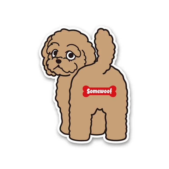 大人気のSomewoofオリジナルのオーストラリアンラブラドゥードル(ブラウン)のステッカーの単品販売です。 人気イラストレーター hoppeさん描き下ろしの犬種イラストのお尻にSomewoofのロゴが入ったかわいらしいステッカーです! シール交換やギフトにもってこいなかわいいアイテムです! サイズ:W52m×H68mm 仕様:屋内用 材質:ミラーコート