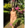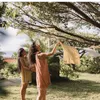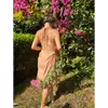 品名:After Beach One Peace ビーチシーンに彩りを添えるAfter Beach One Peace。 海上がりにビキニの上からサラッと着れ、速乾性のある素材の為濡れた体の上からでも気兼ねなく着ていただけます。肩の紐は解けるようになっており、結び方のアレンジでワンピース2スタイルに、スカート1スタイルの3wayで楽しんでいただけます。インナーにデニムやフレアパンツを合わすことでビーチシーン以外にも大活躍です。 海上がりはビキニのままで締め付けのないゆったりとした洋服を着たくなるという海好きの女の子の願いを元に 水着のまま、ふらっと近くのお店まで。を叶えてくれるAfter Beach One Peaceです。 特徴1 GOTS認証済みのオーガニックコットン生地をベンガラ(土)で染め、自然素材だけにこだわり、 使い古した洋服は土に埋めてもらうと地球に還る、地球循環型のお洋服です。 特徴2 どの型の洋服も2way~4wayで着ていただけるようデザインを工夫しており 1着あれば様々なコーディネートを楽しんでもらえます。 特徴3 お客様が普段お持ちのインナーを活用できるコーディネートをご提案することで サマーシーズンのみならず、春秋冬でもご愛用頂いています。 特徴4 GOTS認証済みのオーガニックコットン素材を使った高島ちち"みの生地は 使えば使うほどに柔らかくなりその人の肌に馴染むことが特徴で、お肌の弱い方にも 安心して着用いただいています。 特徴5 高島ちち"みは伸縮性のある生地の為、着れば着るほどに自分自身の身体に フィットしたサイズになってくれます。お客様からもこのようなお声を沢山頂いており、 フリーサイズ 展開でも生地の特徴を活かしそれぞれの体型に合わせた唯一無二の お洋服となっています。