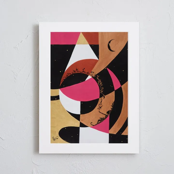【現代アートポスター】月夜 妖精 模様 曲線直線 モダン A3(M) 39.4×50.9cm(ポスターのみ)