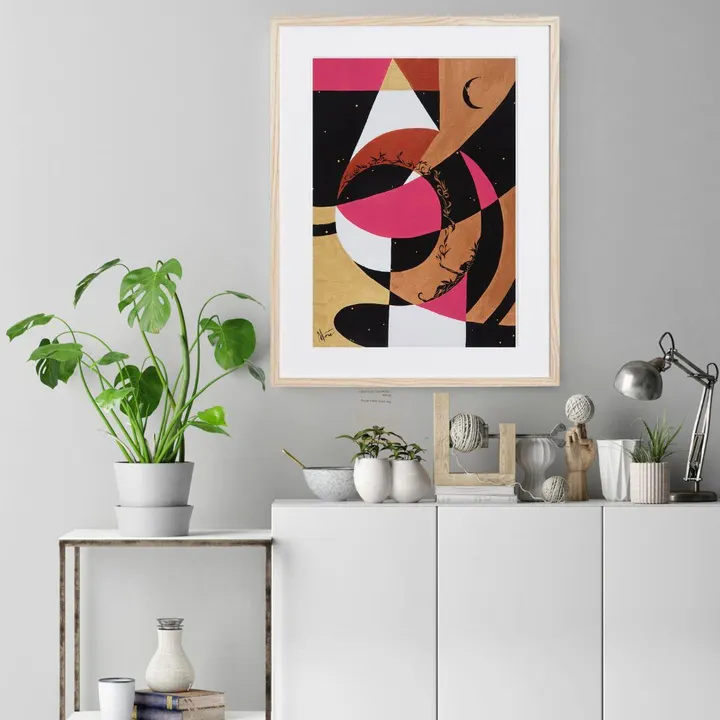 【現代アートポスター】月夜 妖精 模様 曲線直線 モダン A3(M) フレームセット:無垢 41.0×52.5cm