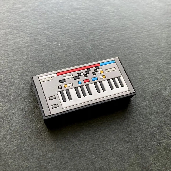 シンセサイザーのラバーマグネットです。 ドット柄デザインでラバー特有の立体感がある かわいいマグネットです。 事務机やロッカーやホワイトボード 冷蔵庫などスチール製のところに飾ってください。 シンセ好きへのギフトにもいいかもしれませんね♪ <シンセ ラバーマグネット仕様> 本体:PVC、ネオジムマグネット 本体サイズ:約41×19×5.5mm(マグネット含む) ※ラバーのカット加工の際に断面に歪みが出る事があります。 素材上の特性ですのでご了承ください。
