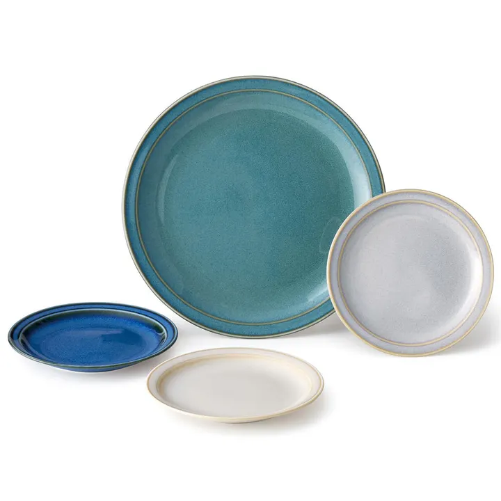 日々の暮らしに溶け込む使いやすいベーシックなカタチ。食卓に深みを与えるカラーをまとわせた洗練された印象のテーブルウエアです。 和食、洋食、中華やアジアン料理、エスニック料理にもおすすめです。 大皿1枚と中皿3枚のセットです。