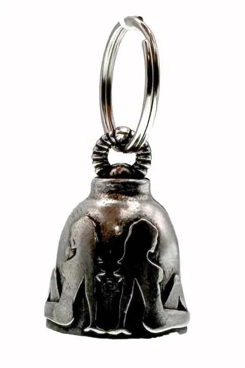 素材:ピューター合金(錫) 付属品:ポーチ 英語説明書  本物のアメリカBRAVO BELLS社製ガーディアンベルです。 MADE IN USA アメリカ製 交通安全 魔除け 御守り ガーディアンベル アメリカのライダーの間には、事故や、転倒の原因は「道路にひそむ悪魔」によるいたずらだという伝説があります。悪魔は走る者に悪戯やトラブルを運んできます。このベルは美しい音色で悪魔たちを追い払うと言われ愛されています。そんな悪魔のいたずらを防ぎ、御守りとなるのが、守護者のベルという意味を持つガーディアンベル。日本でも鈴の音(ね)は神道では魔除けの音と言われています。ピューター製の鈴でいい音色でガーディアンベルはデザインも様々あります。またガーディアンベルにまつわる伝説として、プレゼントとして送られたベルの効果は、自分で手に入れたものの2倍になると言われています。 それゆえに彼氏・彼女・友達・家族へのプレゼントとしての人気も非常に高まっています。シルバーアクセサリーのようにおしゃれに装着できて素敵な音色を奏でるガーディアンベル。バイカー以外にも自転車や旅・交通安全のお守りとしてお使いいただけます。カバン・ランドセル・キーホルダー・ペットの首輪等に付けてお使いください!!※タイラップ等でバイクのフレームにも簡単に取り付けできます。 アメリカンモデルだけではなく、旧車ファン、レプリカライダーまで、さらにバイクだけでなく、自転車や車にもピッタリな御守りとなっています。アクセサリーとしても人気で、アイディア次第で車体だけでなく、キーホルダーや鞄など、どこにでも付けておしゃれに楽しめます。