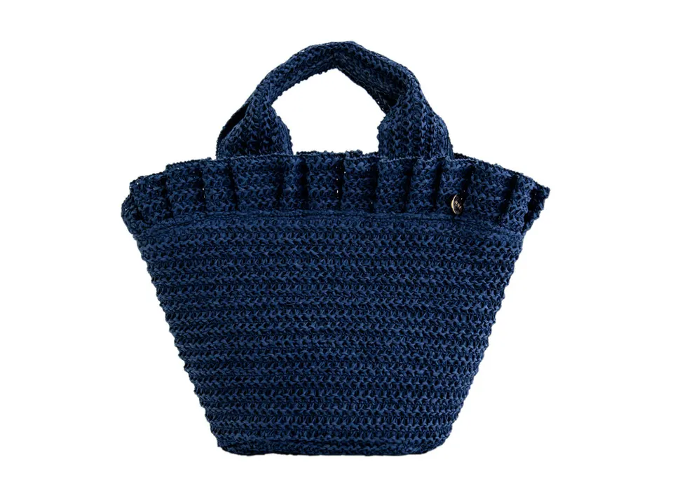 2026春夏バッグシリーズ、涼し気な雑材トートを中心に今年も“大人カワイイ”をたっぷりお届けします。 母の日のプレゼントにもぴったりのアイテムです。 ペーパーの編み地が軽やかな印象のミニトート。 開口部のさりげないフリルがデザインポイントです。 ディープなビビットカラーの展開にすることで、甘さを抑えつつ大人の女性でも持ちやすい雰囲気になりました。 裏地と内ポケットが付いて使い勝手◎ マグネットホック開閉で荷物の取り出しもスムーズに行えます。 オリジナル刻印のメタルチャームが大人っぽいアクセントに。 抑えた価格設定なので帽子やアームカバー、ハンカチなどと合わせたギフト提案強化商材としておすすめいたします!