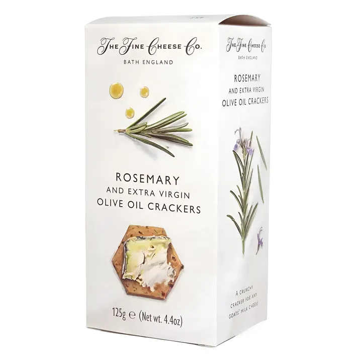 オーナー自らがこだわりを持って選び抜いたチーズが並ぶ、イギリスの人気チーズ専門店「ザ・ファインチーズカンパニー」。 その専門店が、良質な原料を使用し、 それぞれのチーズの味を引き立てるクラッカーを作りました。アロマティックなローズマリーが加わり、ほのかに広がるアロマとクリスプな食感が楽しめます。ヤギのチーズやソフトチーズ、生ハム等にもよく合います。