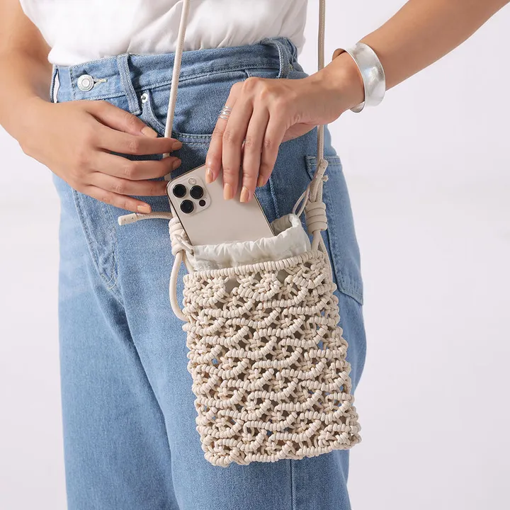 マクラメ ショルダーバッグ(2色)/スマホホルダー ポーチ取り外し NT
