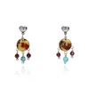 4つの部屋のハニカムピアス 艶やかなドロップ型のアンバーがまるで蜂蜜を思わせ、ミツバチたちを生き生きと表現します