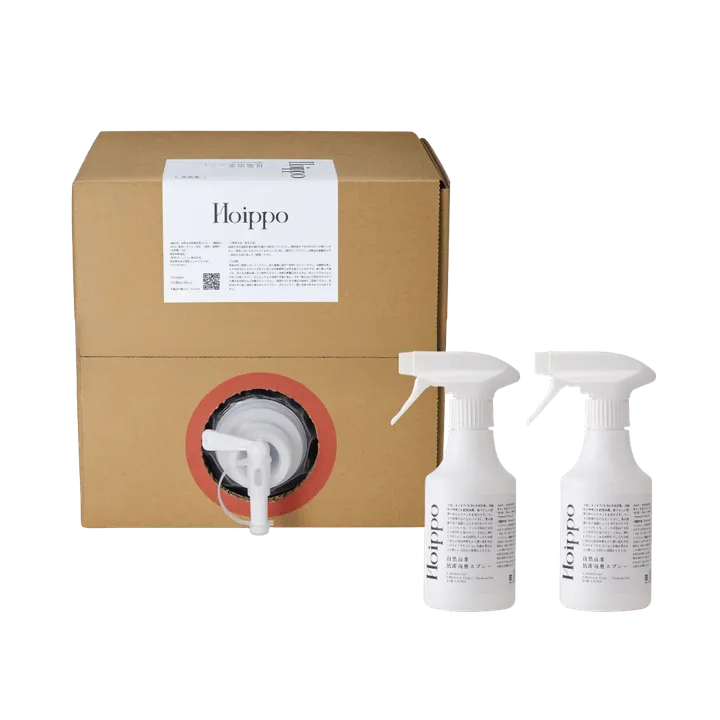 Hoippoの自信作、自然由来99.9% 抗菌消臭スプレー。 本製品の大きな特徴は、香りで誤魔化さない無香料と持続性のある消臭効果。その消臭効果は99.9%です。 高い消臭効果だけでなくコロナ菌やインフルエンザ菌、アルコール除菌効果の少ないノロウイルス菌などにも99.9% の抗菌抗ウイルス効果を発揮します。天然ミネラルと純水のみを含み、赤ちゃんから愛犬愛猫が舐めても問題のない優しさを兼ね備えています。 愛犬愛猫の粗相だけに限らず、被毛にシュッとかけてブラッシングしてもよし、 飼い主さまの日常に、焼肉やタバコ、汗のにおいにもお役立ていただけます。 容器は再利用しやすくリサイクル率の高いガラス容器から、割れが心配な方はプラ容器、たくさん使いたい方は業務用サイズまでご用意。 業務用サイズはプラ容器(空)を2本付属しています。容器を捨てる手間もなく好きな容器に入れることもできとても便利。 Hoippoの抗菌消臭スプレーはリピート率NO.1の商品です。