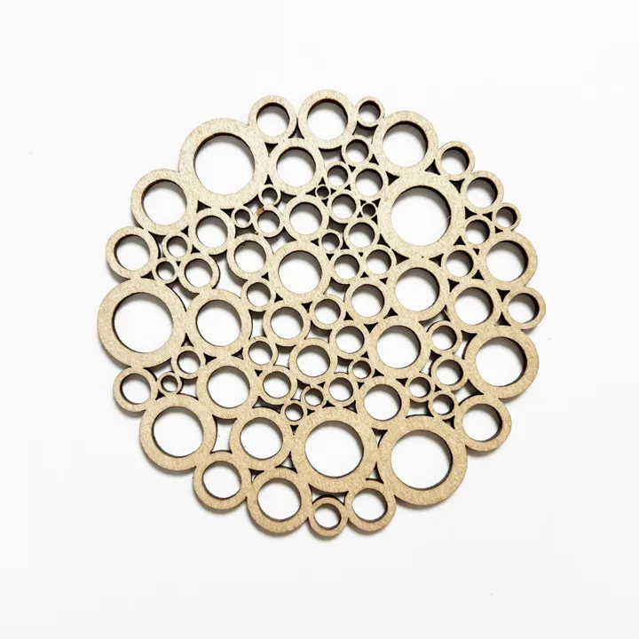 リトアニアで製作しているコースターです。 焼け跡の残らない技法を使用し、レーザーで切り抜いたデザインです。