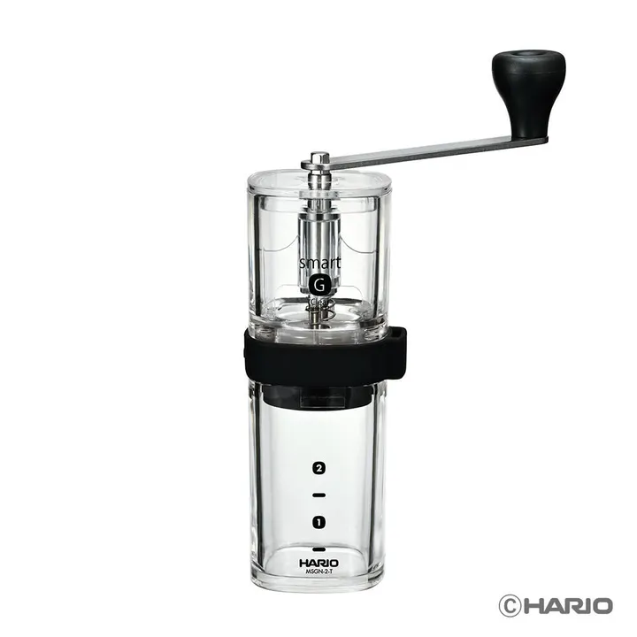 携帯仕様に考えられたコンパクトミル。透明なボディで豆の様子が一目でわかります。バンド部分にハンドルを差し込めるので収納性も抜群。臼が洗える仕様です。