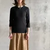 【日本製】丸胴コットンフライス_クルーネック7分袖 ブラック 1-2サイズ