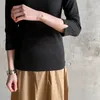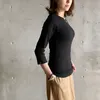 【日本製】丸胴コットンフライス_クルーネック7分袖 ブラック 2-3サイズ