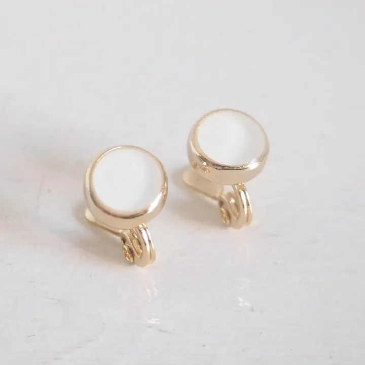 『痛くない』クリップタイプのイヤリング / ホワイトエナメル丸型イヤリング*ピアスタイプあり【Modern】※BOX付き