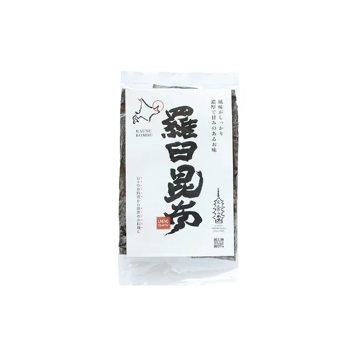 天然羅臼昆布。 しっかりとした味わいのある昆布だしをお愉しみ頂けます。産地の熟成に加えうね乃独自の熟成を重ねて味わい 深い昆布です。