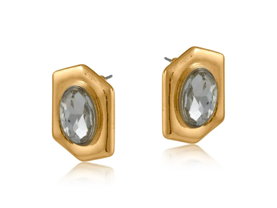 3267 Eva ヘキサゴン ストーン スタッド ピアス Gold