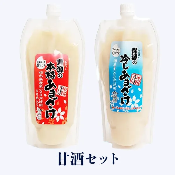 青源の人気甘酒2種セット。米麹発酵で造ったアルコールゼロの伝統甘酒と、もち米入りで自然な甘さと栄養価アップの贅沢甘酒。冷やしても温めても美味しく、健康と水分補給に最適です。 <セット内容> ・青源の本格甘酒 ・青源の冷しあまざけ