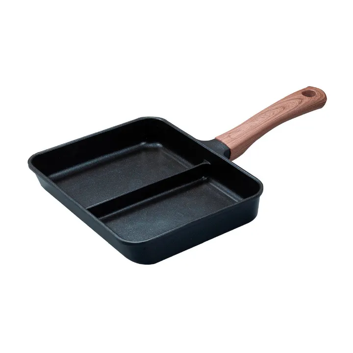 【同時調理で効率2倍!?時短出来て忙しい朝にぴったりな2分割フライパン】 仕切りが付いて二分割されたフライパンが登場! 2つの調理を同時に行えるので、朝食作りやお弁当作りが一度に済み、時短になります。さらに洗い物も減らせて、忙しい朝にぴったりです。 熱が素早く均一に広がる構造で、安定した焼き上がりに。ハンドル部分まで一体成形で作られているため、汚れが溜まりにくくお手入れも簡単です。 【2品同時に調理可能】 仕切り付きのデザインで、卵焼きや焼き鮭、ウインナーなど2品を同時に調理可能。 これ1つで朝食やお弁当のおかずを手早く作れます。2品同時調理で効率が上がり、忙しい時間帯にも便利です。 【汚れが落ちやすいふっ素加工】 フライパンの内面はふっ素加工を施しており、食材がくっ付きにくく焦げにくい仕様。汚れも簡単に落とせるため、お手入れの手間が減ります。 【熱伝導と蓄熱性に優れた素材】 表面は熱伝導が高く、内部は蓄熱性に優れた素材を採用。フライパン全体に熱が均一に広がり、食材を包み込むように加熱します。中までしっかり火が通りやすい設計です。 【様々な熱源に対応】 ガスコンロやIHをはじめ、幅広い熱源で使用可能。ご家庭のキッチンにぴったりです。 【製品情報】 商品名: IH対応二品同時に作れるフライパン MC サイズ: W320×D205×H60mm 重量: 550g 満水容量: 0.9L 材料の種類: [本体]アルミニウム合金 [底面]ステンレス鋼 [ハンドル]フェノール樹脂 [内面]ふっ素樹脂塗膜加工 [外面]焼付け塗装 最大内径: 200×160mm 底の厚さ: 3.7mm(はり底を含む) 原産国: 中国