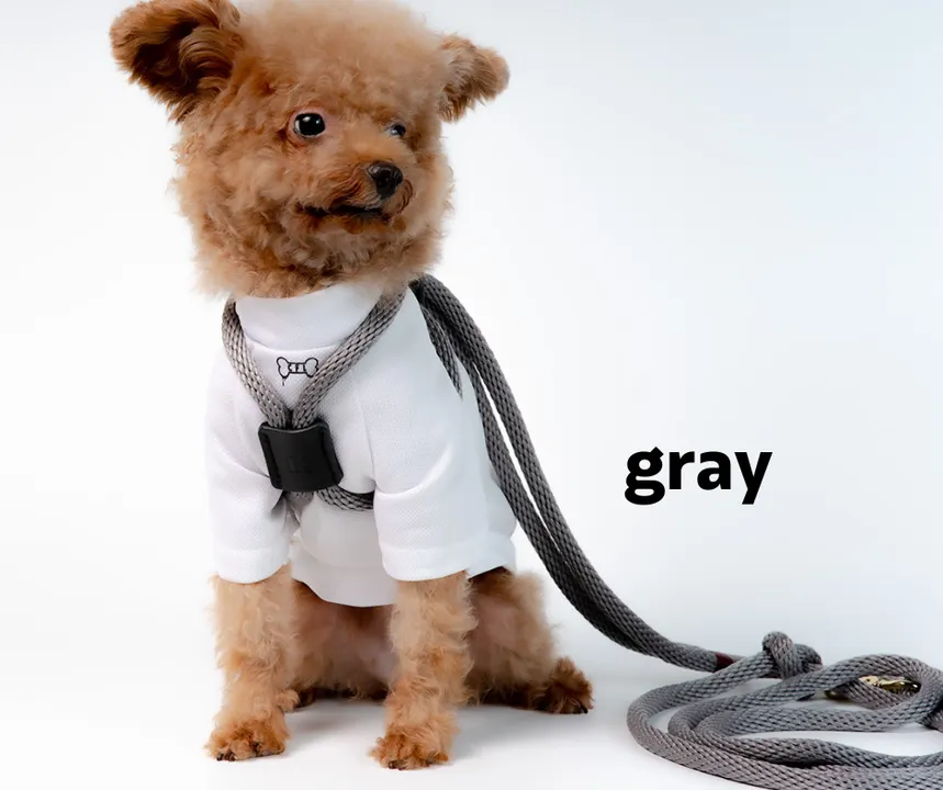 ハンズフリーリードとハーネスの一体型アイテム。 柔らかく、耐久性のあるブレードロープを使用した設計で、簡単に装着可能。 装着を嫌がるわんちゃんへの負担も軽減します。 ジャストサイズで着用できるためわんちゃんが後退りしても抜けにくく、厚手のアウターを着用していてもにフィットします。 また、ハンズフリーリード機能を搭載しており、肩掛けで両手が自由になるため、散歩中の利便性が大幅に向上。 ナスカンと丸カンのシンプルな2つの金具のみを使用することで、軽量でありながらしっかりとした機能性を実現しました。 無駄を省いたシンプルなデザインは、持ち運びや装着の負担を軽減し、飼い主様とわんちゃんへ快適さをお届けします。 ~装着方法~ ①ロゴが押印してあるアジャスターを下に下げる ②輪に頭を通す ③2つの輪ができるので、前足をロープの輪にくぐらせる ④胸元のアジャスターを上に上げる(首元の調整) ⑤背中にアジャスターをきゅっとしめる(胴体の調整) ~アジャスターについて~ レザーアジャスター部分ですが、経年変化によりロープが伸びることや、レザーが柔らかくなる特徴を考慮し、あらかじめアジャスターの穴をきつめに作っております。 馴染むまでは片側ずつロープを引いていただくと、スムーズに装着が可能です。 繰り返しお使いいただくことで、徐々に調整がしやすくなります。 ※犬具引張強度試験実施済み ※通常下の使用でしたら約30kgまでのわんちゃんに使用可能でございます。(引っ張りが極度に強いわんちゃんに対しては30kg以下を推奨しております。) 〈color〉 black/gray/beige/burgundy/dark green/navy/camo ※大切な愛犬の安全を守るために、リードや首輪の定期点検をお願いいたします。 使用時の事故やトラブルには一切の責任を負いかねます。 必ず使用前に点検をお願いいたします。(買い替え目安は半年~1年です。) 犬具は消耗品であります。ご使用前に、リードや首輪の結び目、バックル、ナスカン、および素材の状態を注意深く確認してください。 摩耗や亀裂、異常なくぼみがないかをチェックすることもお忘れなくお願いいたします。 リードや首輪に異常な箇所がみられる場合は、使用を止め、速やかに交換してください。