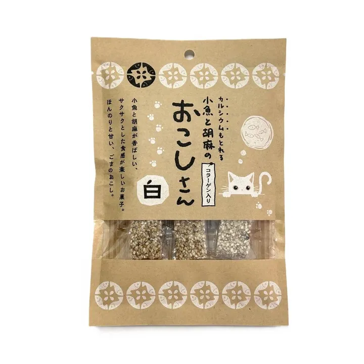 【初回の方はまずこちらから/現品サンプル】 栄養たっぷり胡麻のおやつ 小魚と胡麻のおこしさん白(コラーゲン入り) 8枚