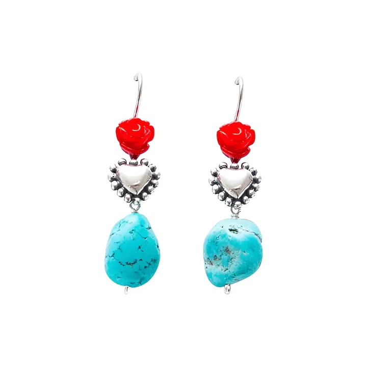 Aretes Mi Primer Amor|ハートのピアス(シルバー・ターコイズ・天然石)
