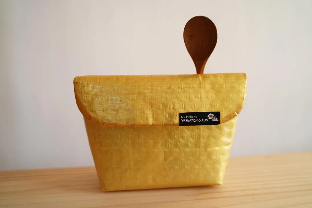 【 U.L. FUN Meal 】のこだわり フリーズドライのご飯などの保温や、350ml缶のビールなどの保冷に使う超軽量の保温保冷カバーです。 ネーミングは、楽しく食事をすると言う思いを込めて、【U.L. FUN Meal 】(ウルトラライトファンミール)と名付けました。 ▶︎こだわりの素材 内側には、アルミ遮熱材のアストロフォイル、熱反射率97%のアルミシートを使用しています。 アストロフォイルは、厚みが4mmと薄く、表面のアルミシートによって外部からの熱い輻射熱を反射する遮熱材です。熱を伝わりにくくし蓄熱保温する厚みのある断熱材とは異なり、輻射熱による高い保温効果が期待できます。 お湯戻しするフリーズドライのご飯などは、保温調理で標準時間より時短が可能です。寒い時期は温かいご飯を食べられるのでおすすめです。 暑い時期は、350mlの缶ビールが1本入るので保冷カバーとしても使えます。 宇宙服やロケットが受ける電磁波の研究を経て「アルミと空気層」を使った遮熱理論が、現在では航空機などにも使われており、この理論を建築物向けに開発されたのがこの「アストロフォイル」だそうです。 外側の生地は、できるだけ軽くしつつも耐久性を考慮し、ダイニーマ®️コンポジットファブリック1.43を使用。 ▶︎成形 どんなに保温保冷効果の高い素材を使っていても、成形する時に隙間があると保温保冷効果は落ちてしまいます。 せっかくの素材の良さを最大限に生かせるよう、脇と底の繋ぎ目部分に隙間がないように形成しているのも大きなポイントです。 ▶︎軽さとサイズ できる限り軽くしたいため、モンベルや西尾のフリーズドライが収まるギリギリのサイズに作成。 また保温調理中、安定して自立するようにマチを5cmとりました。 蓋は閉まりませんが、カップ麺も入れて保温することができます。 コンビニのおにぎりが3個入るので、おにぎりが潰れることなく持参できます。 ▶︎ホルダー 後ろ側に、手を入れられるホルダーをつけ、手に持って保温したままフリーズドライなどのご飯が食べられます。 ※ 左利きをご希望の場合は、カートに追加した後、カートをご覧頂くと「注文に関する特別な指示・備考」欄がございますので、そちらに左利き希望とご入力をお願い致します。 また、フリーズドライのご飯にお湯を入れて保温調理時にかき回したスプーンやフォーク、箸などをホルダーに立てて置いておけます。 ちょっとカトラリーを一時的に置いておきたい時などにとっても便利です。 ▶︎フック ストラップをかけられるようにフックを両側につけました。カラビナをつけて吊るしたりできます。 ▶︎蓋の閉じ方 蓋はマジックテープの仕様になります。 これには理由があります。 ・中にお湯を注いだフリーズドライを入れた時の蓋の閉めやすさがマジックテープだと簡単で楽にできる。 ・中に入れるフリーズドライの大きさによって、蓋が多少ずれてもマジックテープなら蓋ができる。 ・表側の見た目のデザインがスッキリとシンプルになる。 ▶︎SPEC 素材:本体:アウトロフォイル(アルミ遮熱材) 表生地:1.43oz Dyneema®️Composite Fabric ※超軽量で丈夫な耐水生地ですが、鋭利な物で突き刺すと簡単に穴が空き、長時間同じ箇所が擦れると薄くなり裂けることがあります。 サイズ:横 約18.5cm × 高さ 約13.0cm × マチ 約5.0cm 容量:約500ml 重量:約27.5g 色:Black、Green、Dark Green、 (限定カラーは、その時々によります)