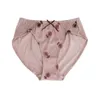 薄くて伸縮性のある生地に刺繍をしました。軽やかでお洒落な仕上がりになりました。 バックは伸びを確保する為に刺繍は入れていません。 サイズM(ヒップ87-95) お揃いのノンワイヤーブラがございます。