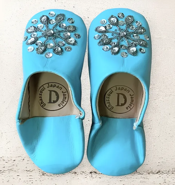 ・バブーシュとは革でできた室内履きです。 ・GJJが革と制作にこだわったオリジナルバブーシュです。 ・モロッコのリゾート地アガディールの海をイメージして作りました。爽やかなエメラルドグリーンが素敵な一足です。 ☆革の特長☆ なめし加工を丁寧に行った機械仕上げの羊革のみを使用しております。 革本来の匂いはありますが、獣臭はありませんのでご安心ください。