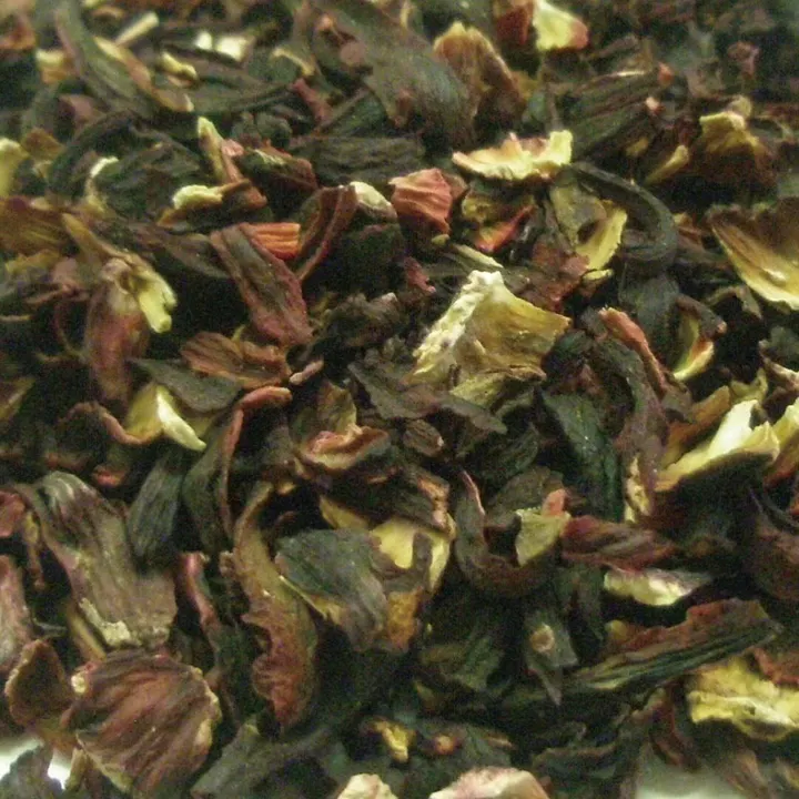 英名:Hibiscus, Cut 学名:Hibiscus sabdariffa 科目:アオイ科 部位:花萼 別名:ローゼル/ローゼリソウ ハイビスカスを抽出しやすくするために、カットしたタイプです。 さわやかな酸味があり、ローズヒップとブレンドされて飲まれることが多いです。 バイタリティーをUPさせる、鮮やかなルビー色のハーブティーです。 他に、料理やお菓子作りにもご利用できます。