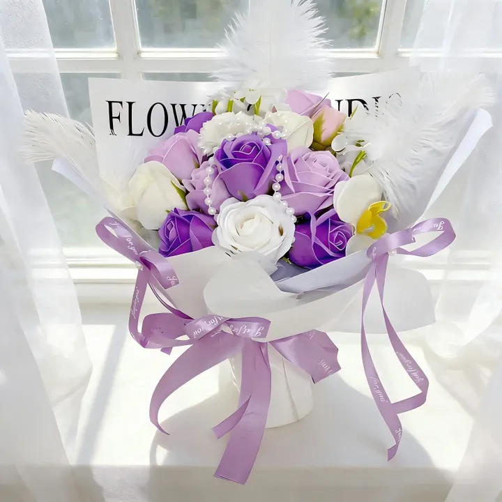 大人気枯れないお花花束 大人気ソープフラワー 花束 母の日造花 花 敬老の日フラワーギフト バラ 結婚式誕生日卒業式成人式プレゼント パープル系