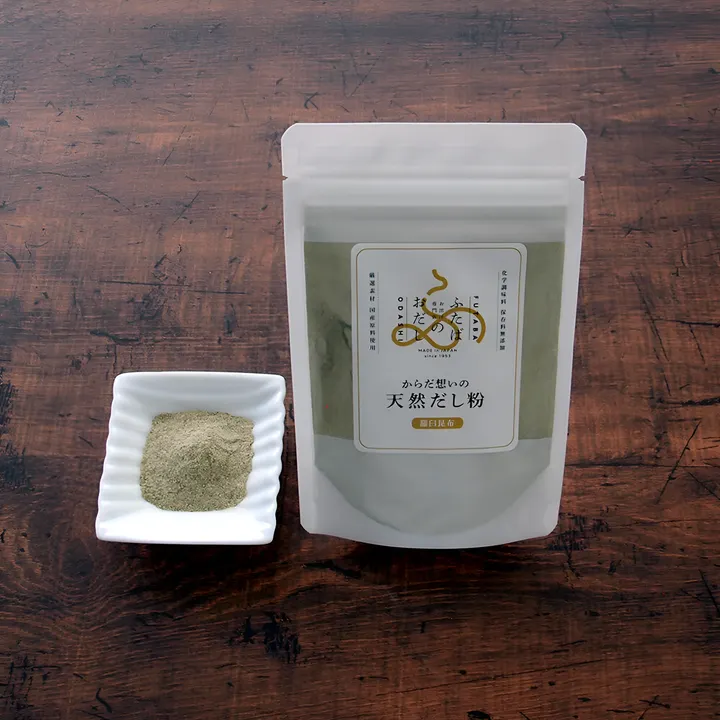 北海道産・羅臼昆布を細かく粉砕した商品。羅臼昆布は他の昆布と比べて、濃厚な味わい、コクの強さが特徴です。料理に使用の場合、昆布の旨味がしっかりとしていますので、使う調味料(塩など)の量を抑えても、料理を美味しくいただけます。減塩効果にもつながります。