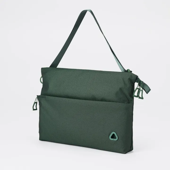 時間にも、場所にも、やり方にも縛られない。「働くこと」と「遊ぶこと」をシームレスに行き来し、クリエイティブに生きる人たちのために設計されたバッグです。 ※こちらの商品はサコッシュの「Lサイズ」です。 ・A4ファイルや13インチのPCもすっぽり入るサイズ。 ・前ポケットは、独自のL字開閉+メッシュポケットで、全体がパッと見えるためものを探す時間が省けストレスフリー。 ・着脱時に外せるバックル。 ・つかみやすさにこだわったオリジナル引手。ブランドアイコンのアイレットは、ケーブルを出すことも可能。 ・水を使わない染色で作られたe.dye®生地を使用。QRコードをスキャンすることにより、水、薬品、CO2削減量の確認が可能。