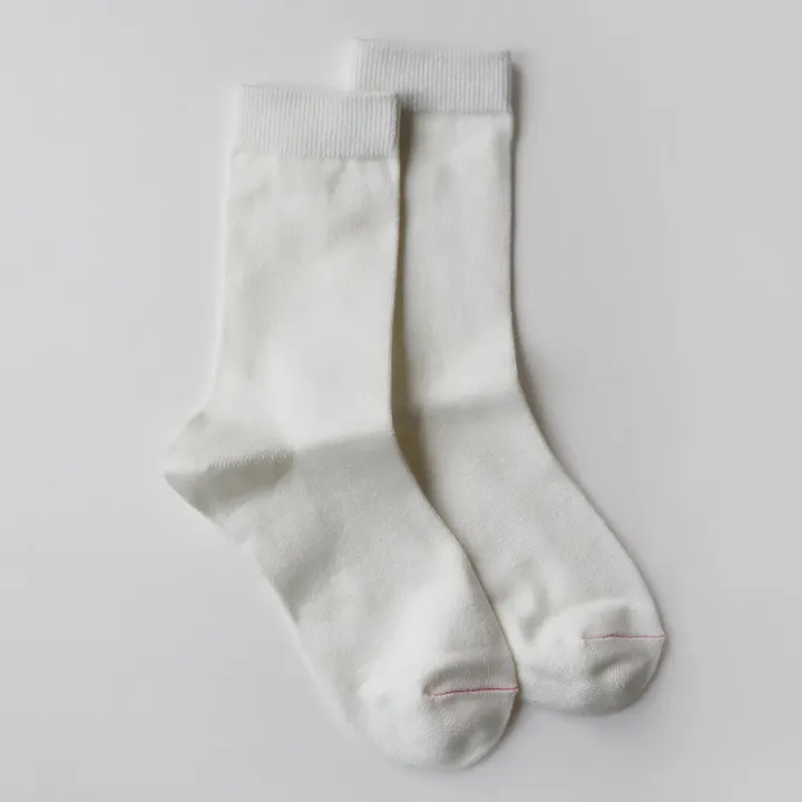 【1Pソックス】ちょびっとウール ベタ編み クルーソックス【レディース】 01 オフホワイト Sサイズ:22.5-24.5cm